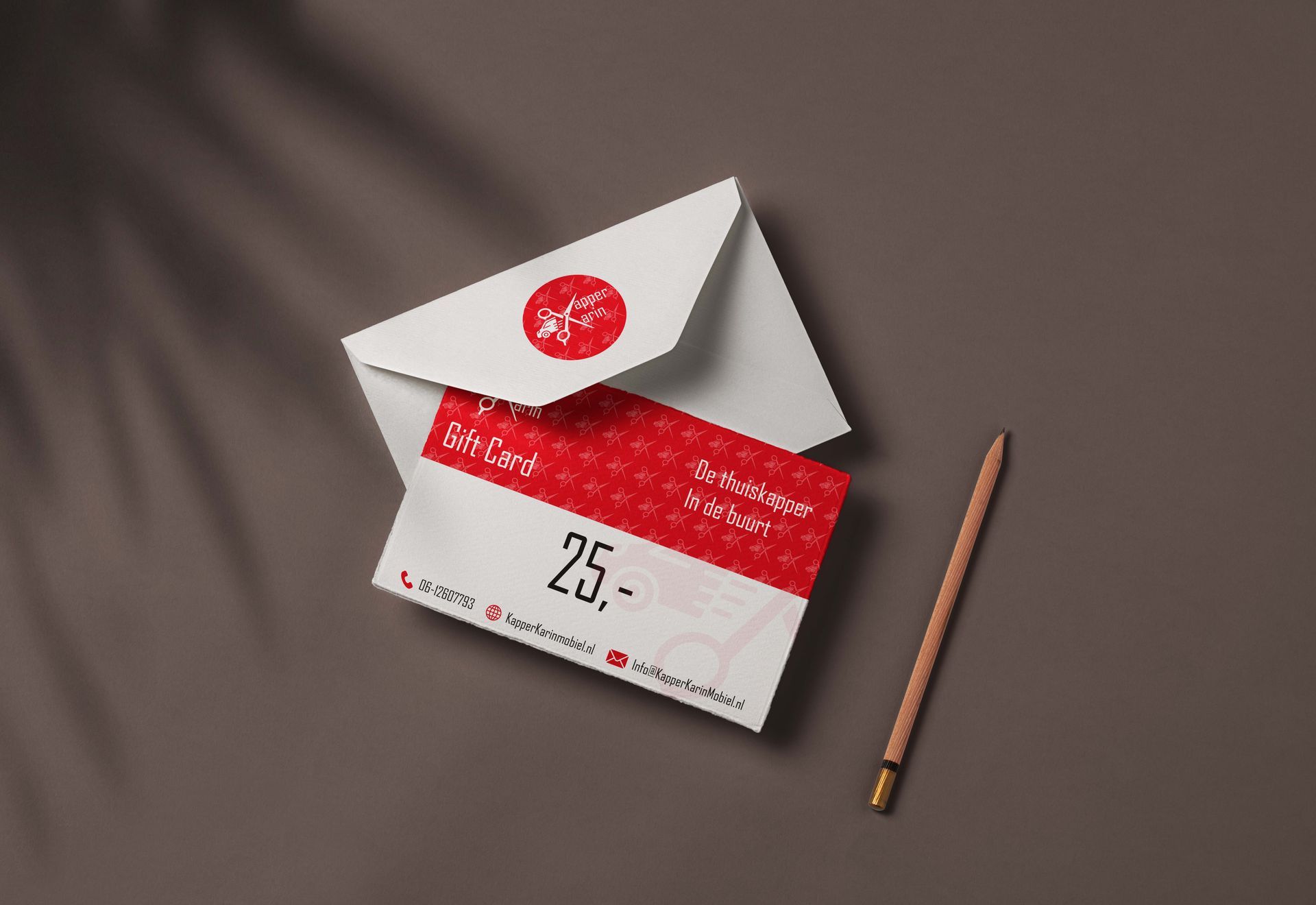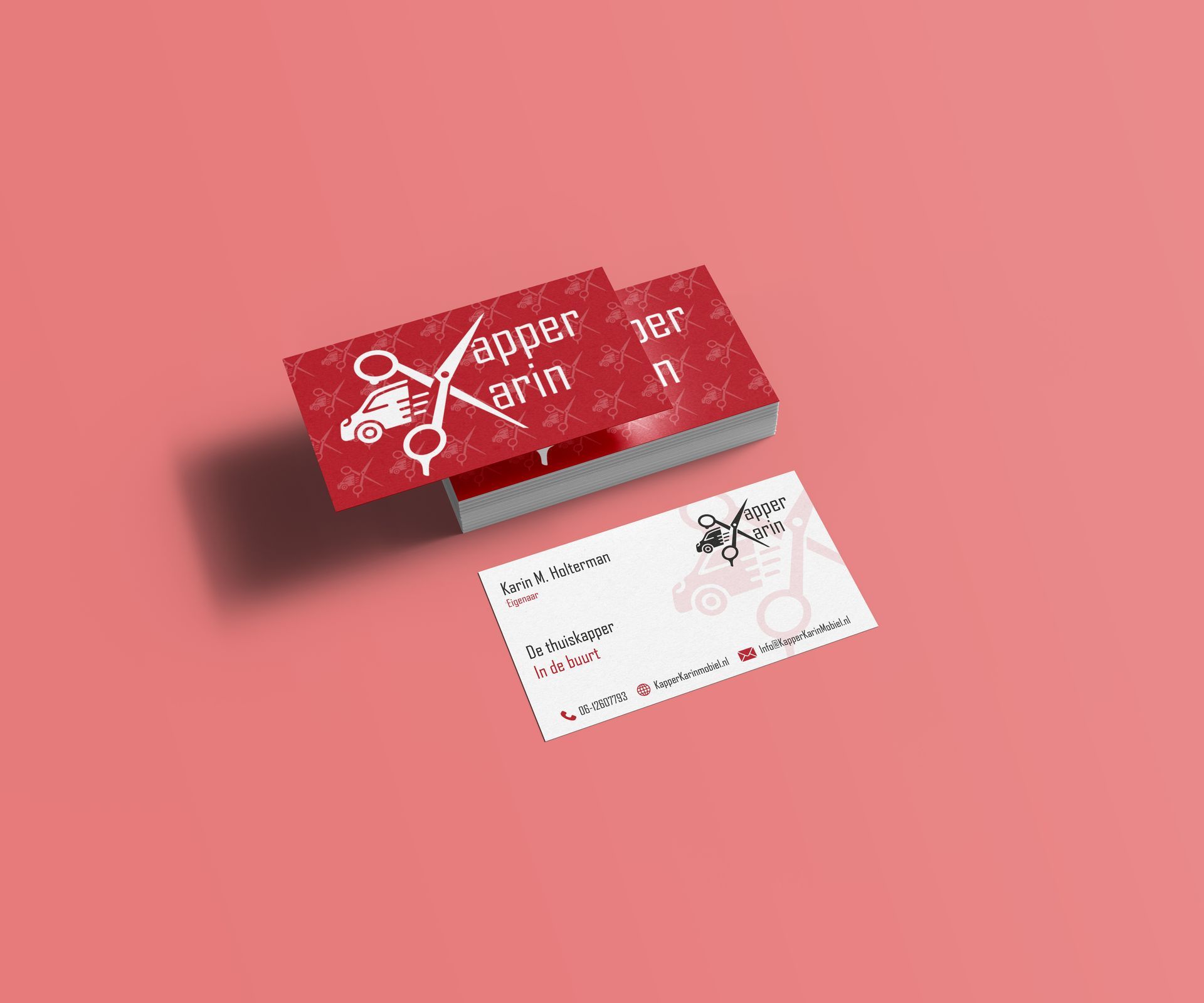 Hairdresser Karin is a mobile home hairdresser who comes by appointment, which is why it is important that the mobile home hairdresser part is reflected in the logo by means of the car, and the scissors are a nice replacement for the letter K.